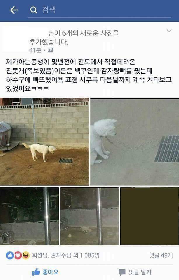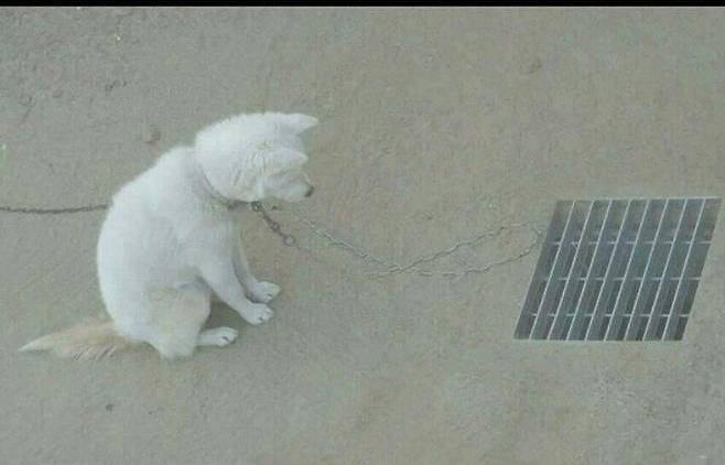 뼈다귀를 하수구에 빠뜨린 강아지.jpg