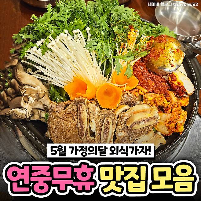 회사를 벗어나 가족들과 함께 보낼 수 있는 시간이 훌쩍 늘어난 5월, 공휴일에도 쉬지 않고 운영하는 연중무휴 맛집의 존재감이 그 어느때보다 빛을 발할 때인 것 같아요.