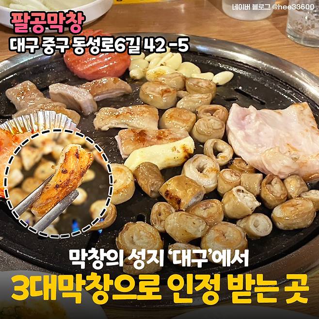 다섯 번째는 대구 동성로에 위치한 <팔공막창>이에요! 막창이 '대구10미'로 꼽힐 만큼 대구의 대표적인 음식이라는 점 알고 계셨나요? 그런 대구에서 팔공막창은 무려 '3대막창'으로 꼽히는 곳이라고 해요!