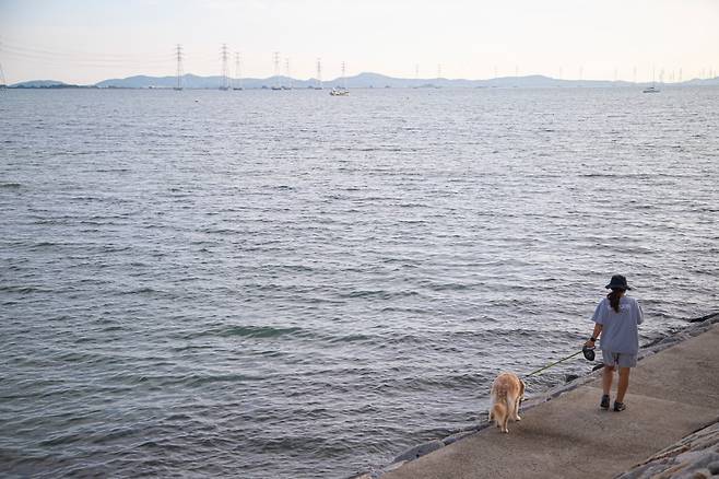 시흥 거북섬은 인공섬이다. 모양이 거북이를 닮아 이름 붙여졌고, 섬의 머리 부분이 바로 여행자들이 걷는 해안산책로다. 해안로만 따라서 걸어도 대략 2km 정도의 거리로, 산책을 즐기기에 좋고 시화호를 건너온 시원한 바닷바람이 더위를 식혀줘 부담없이 걸을 수 있다. 다만, 그늘이 없어서 한낮이라면 모자나 양산이 필수다. 시화호 건너편에 보이는 섬은 대부도와 영흥도다.