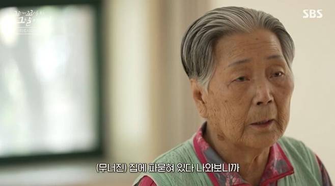 "불이 꺼진 것처럼 깜깜해져 버리니까. 천지도 안 보이고 캄캄해지니까 아무것도 몰랐지. 무너진 집에 파묻혀 있다 나와보니까 밖에 있는 사람 다 죽었어요."