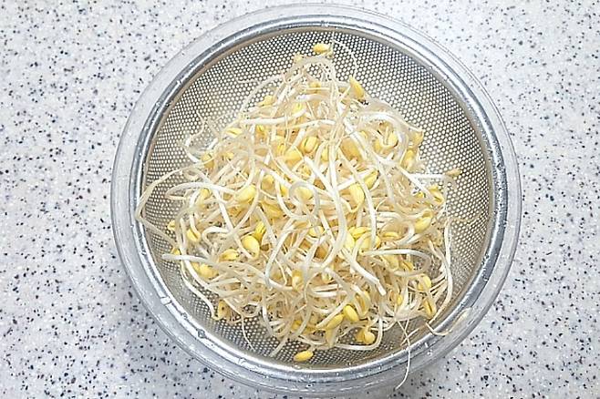 먼저 콩나물 1 봉지를 깨끗이 씻어 체에 밭쳐 둡니다