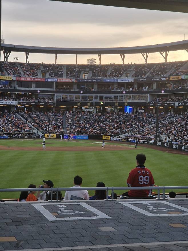 한편, 먹거리만큼이나 열렬한 응원 열기에 어우러지고 싶은 사람에게는 ‘카스존’으로 불리는 응원단석이나, 그 근처에 있는 내야지정석으로 가길 추천한다. 사실 응원단상이 있는 카스존 근처가 한화 응원의 중심지긴 하지만, 올 시즌 한화 팬들이 워낙 뜨거운 열기를 보여 주고 있기에 3루 내야지정석까지 주황색 물결로 채워지는 광경을 쉽게 목격할 수 있다. 특히 외야석을 제외하고는 가장 낮은 가격대의 좌석인 만큼, 예매가 시작됐을 때 가장 치열한 경쟁이 펼쳐지는 곳이기도 하다. 만약 여러분이 운 좋게 이 자리를 쟁취했다면, 원 없이 대전 팬들의 응원 열기를 온몸으로 느끼고 오시길.