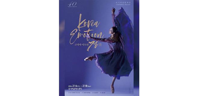 ‘코리아 이모션’은 2021년 제11회 대한민국발레축제 초청작으로 초연한 ‘트리플 빌’ 중 가장 뜨거운 호응을 받은 작품입니다. 한국인이라면 누구나 공감하는 고유의 정서 ‘정(情)’을 아름다운 몸의 언어 발레로 펼쳐냅니다. 유니버설발레단의 창단 40주년 기념 공연입니다.
