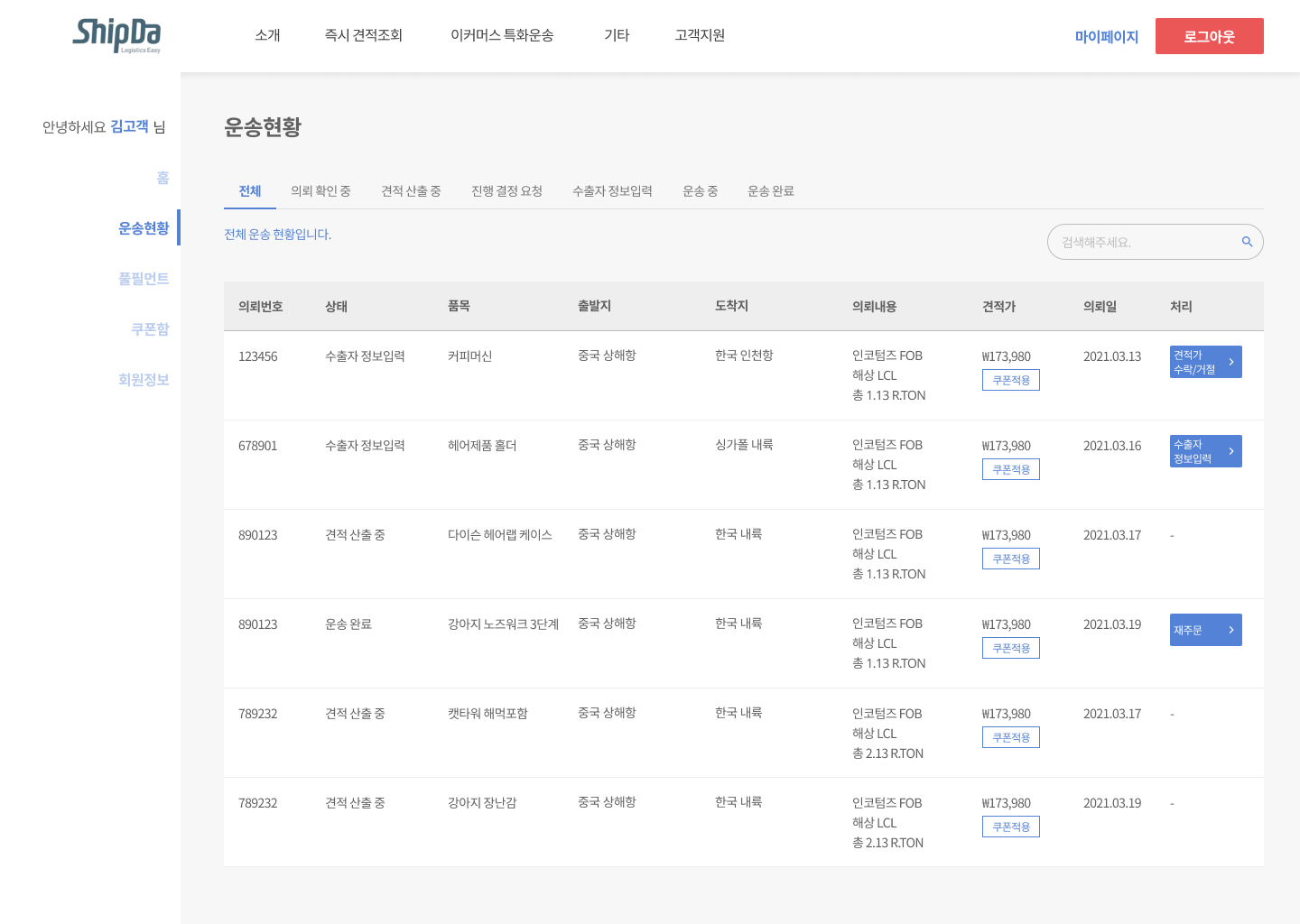 이중원: 일단 타 포워더와 달리, 실시간 견적 조회 서비스를 제공해요. 기존 포워더들은 주문을 받으면, 자기들도 여러 전화로 여러 회사(해운사, 항공사, 내륙운송사 등)에 견적을 받았습니다. 그중 싼 회사에 수수료를 붙여 고객에게 알려줬죠. 반면 저희는 홈페이지에서 정보를 입력하면, 그 자리에서 바로 견적이 출력됩니다.