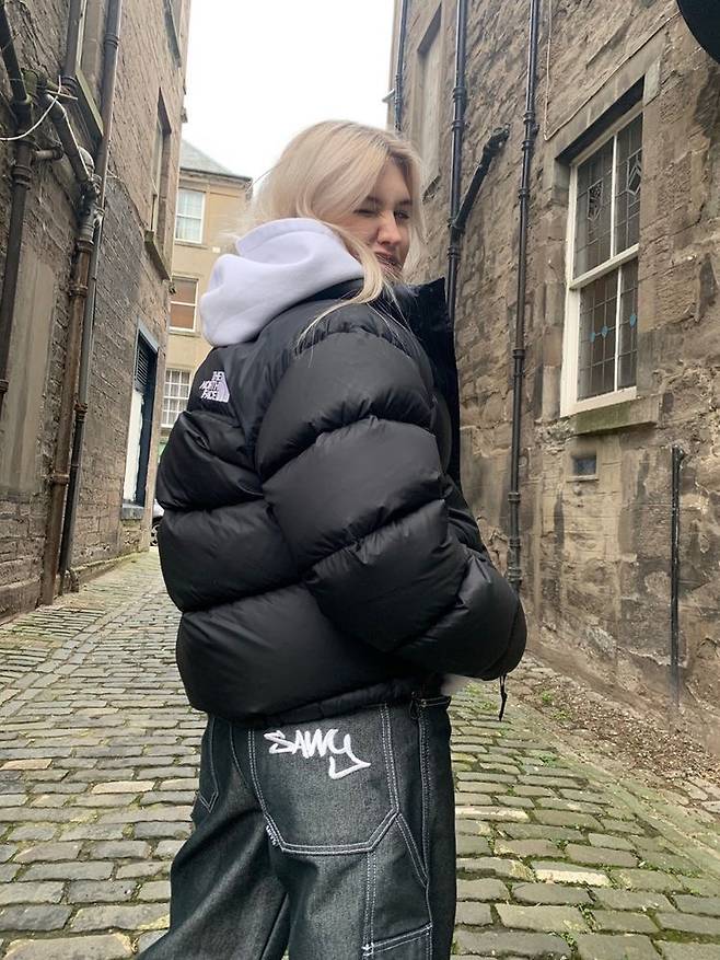 자칫 한없이 밝아질 수 있는 코디를 블랙 숏패딩이 컷 해준 느낌이랄까
