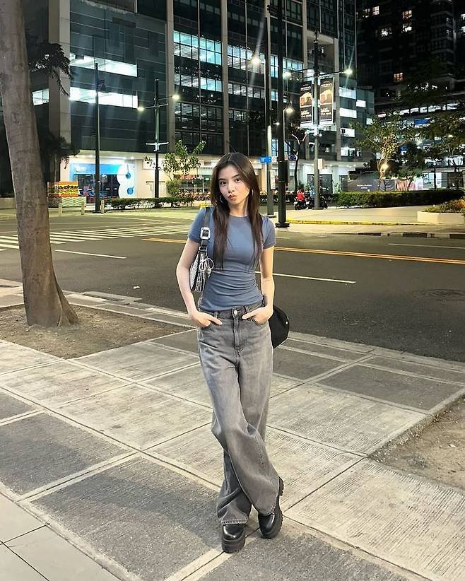 ✔ 연청 데님 와이드 팬츠 + 밝은 블루 셔츠