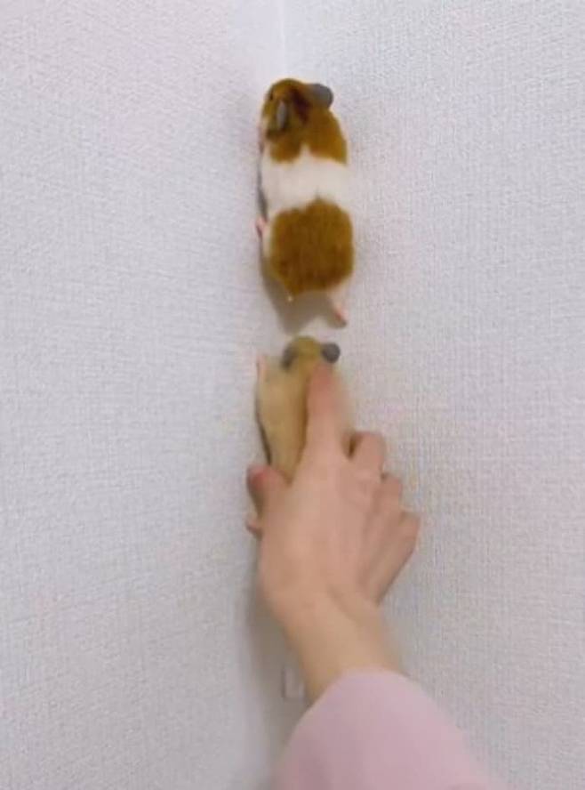 그런데 SNS상에서 세 마리의 햄스터가 줄을 지어 벽을 타고 올라가는 놀라운 사진이 공개되어 큰 화제가 되었습니다.