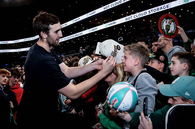 이 선수가 보스턴에서 보낸 시즌은 겨우 네 시즌. 최고 성적은 6.0득점 5.3리바운드에 불과했지만 팬들은 큰 박수를, 옛 동료들은 환한 웃음으로 그를 맞았다.