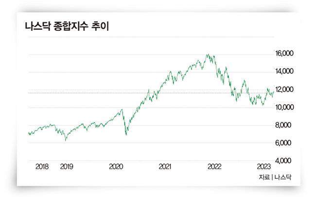 "‘돈을 잃지 않는다'가 원칙이다. 2021년 나스닥 지수가 1만6000을 찍었을 때도 단타로 수익을 낼 수 있었지만 나는 인버스를 매수했다(그래프 참조). 2020년까지 이어진 13년간의 상승장에서 돈을 못 벌고 고점에서 수익을 내기 위해 매수한다는 것이 말이 안 됐기 때문이다. 그래서 투자금의 30~50%를 인버스로 갈아탔다. 지난해 원유도 마찬가지다. WTI(국제유가)가 120달러를 넘었을 때 당시 달러인덱스도 120까지 치솟고 있었다. 유가와 달러인덱스는 시소처럼 움직이는데 이례적인 상황이 발생할 것이다. 그래서 유가 인버스 ETF(상승지수펀드)를 매수해 수익을 냈다. 이처럼 돈을 잃지 않을 자리, 버티면 이길 수 있는 자리가 있다. 이 자리를 알아채는 것이 투자에서 매우 중요하다."