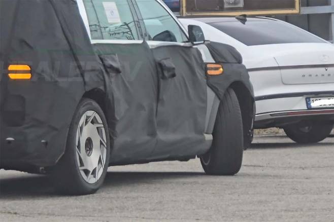 또한 이번에는 1열 센터 콘솔 및 기어 노브 디자인 일부가 함께 포착됐다. 기어 노브는 제네시스 브랜드에 주로 적용되는 다이얼 타입이 적용됐고, 손잡이 부분을 크리스탈 패턴으로 가공해 고급감을 높였다. 센터콘솔에 적용된 두 개의 컵홀더의 독특한 디자인도 눈길을 끈다.