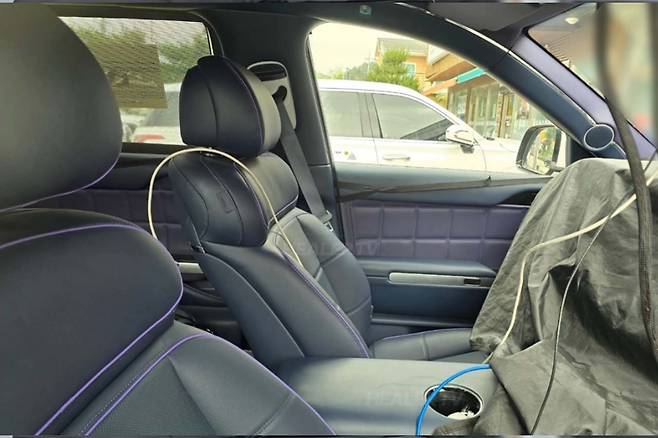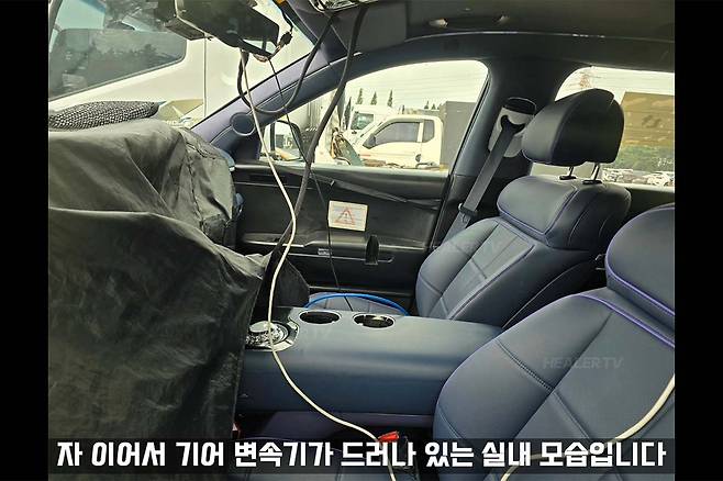 신차 전문 유튜브 채널 ‘힐러TV’가 공개한 GV90 테스트카 스파이샷은 차량의 실내 디자인 일부를 확인할 수 있다. GV90의 실내는 기반이 되는 콘셉트카 네오룬에 적용된 디자인 요소가 곳곳에 반영됐다. 대표적으로 진한 보라색 기반의 실내 컬러와 시트 디자인, 엠비언트 라이트 스트립이 대표적이다.