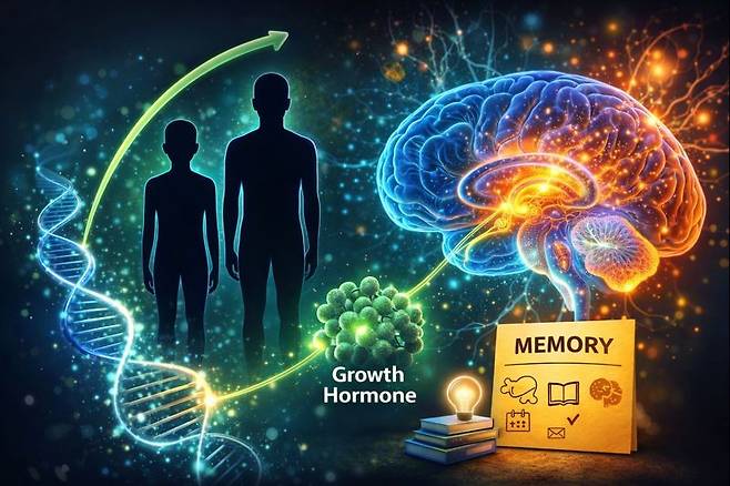 그런데 성장호르몬이 단순한 신체 성장뿐 아니라 뇌의 기억 형성 과정에도 깊이 관여한다고 해요!