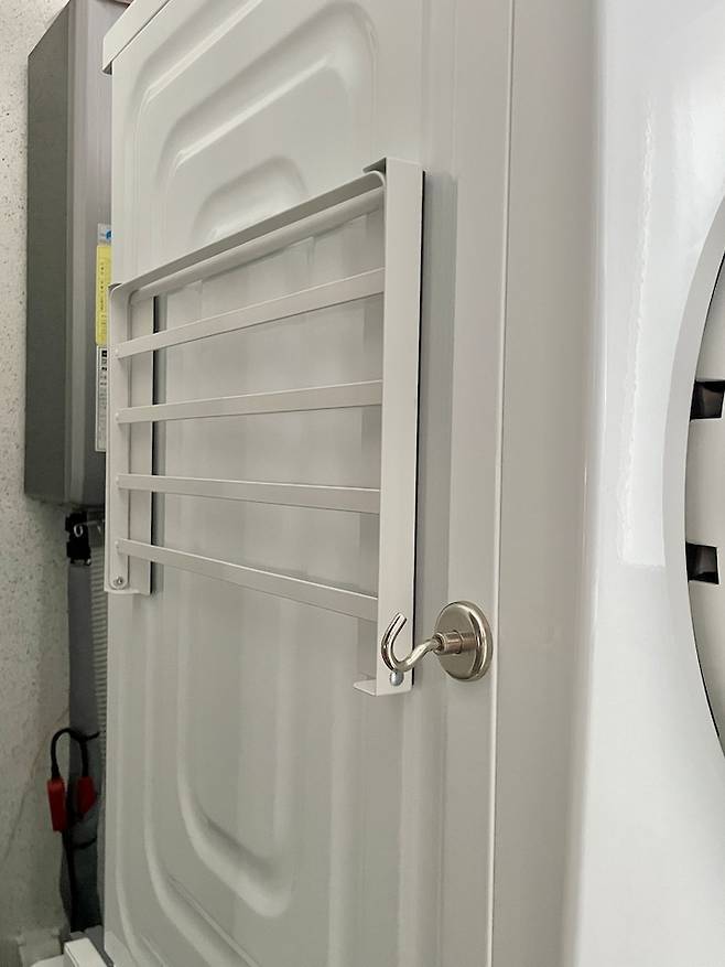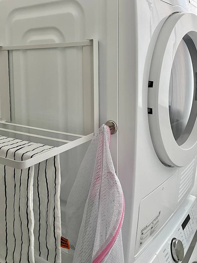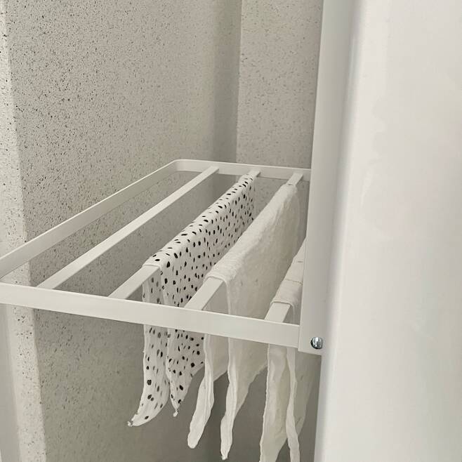 젖은 수건이나 세탁망은 그대로 바구니에 넣어두면 곰팡이가 생기거나 냄새가 날 수 있어요. 그렇다고 지저분하게 아무 데나 걸어둘 수 없기에 세탁실 골칫덩어리가 되곤 하는데요.