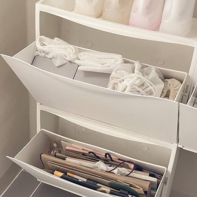 ✔️ 섬유 유연제부터 일회용품까지 넉넉한 수납