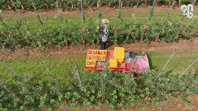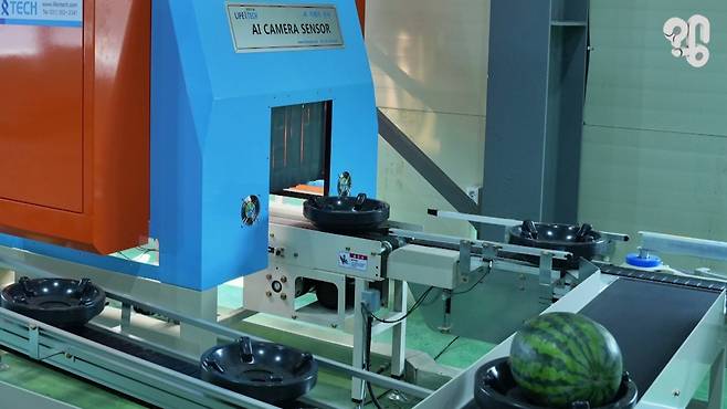 AI의 진가는 과일이 근적외선 검사를 거친 뒤 발휘된다. AI는 영상 자료를 기반으로 당도 측정이 완료된 과일들을 2차로 분류하게 된다. 근적외선 측정만으로는 과일의 모양, 색, 밀도까지는 판단할 수 없기 때문.