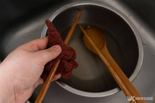 나무 수저를 씻을 때 합성 세제 사용은 금물이다. 가장 흔히 하는 실수가 일반 주방 세제와 수세미로 강하게 문질러 닦는 것인데, 이는 나무 표면의 미세한 틈이 수분을 빨아들이는 성질을 간과한 행동이다. 합성 세제를 사용하면 거품과 화학 성분이 나무 깊숙이 침투하게 된다.