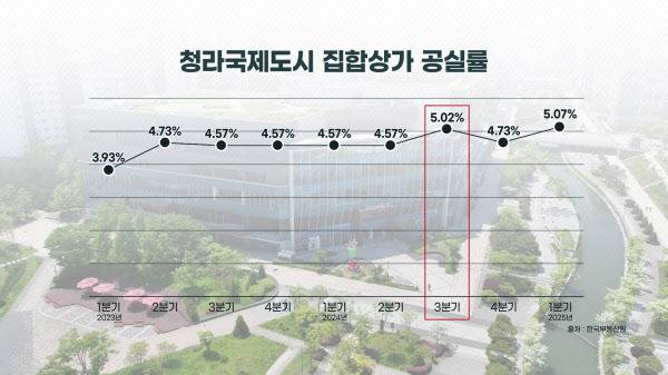 한국부동산원 통계에 따르면, 청라국제도시 집합상가 공실률은 2023년 1분기 3.93%에서 올해 1분기 5.07%까지 상승했다. 부동산R114 자료에 따르면 청라신도시에는 2019년 943개, 2021년 606개 등 코로나19 전후로 연평균 400개 이상 신규 점포가 들어섰다. 과잉 공급에 따른 상권 붕괴가 현실화된 셈이다.