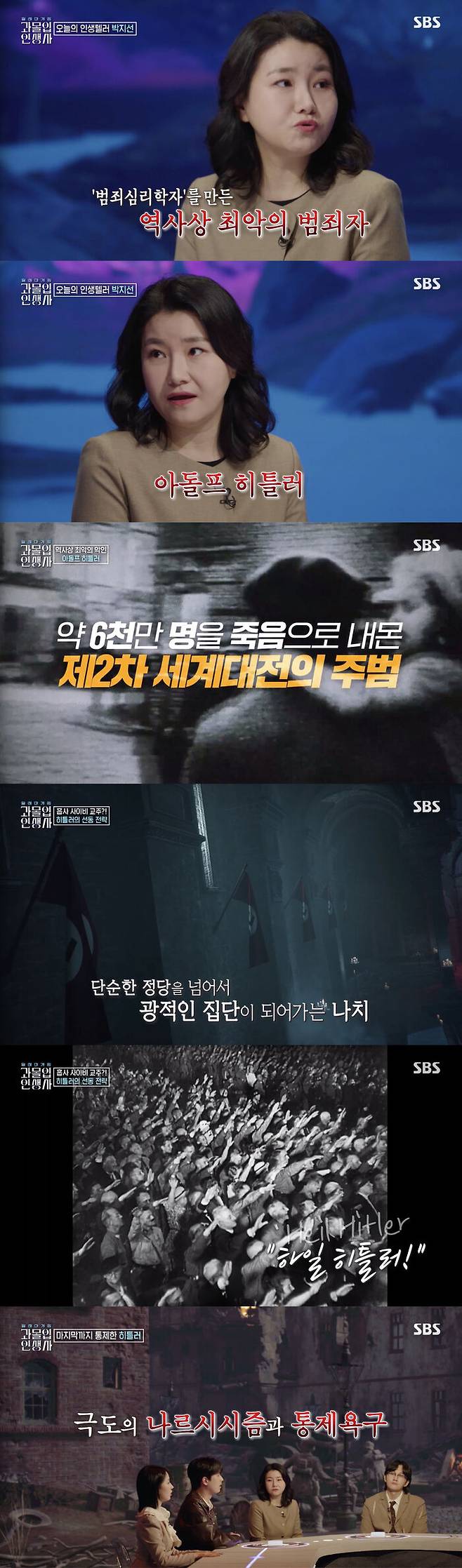 이날 박지선은 오늘 과몰입할 주인공에 대해 "지금까지 다룬 악인 중 사람을 가장 많이 죽인 살인범이 아닐까 싶다"라며 "제 직업을 만든 장본인, 현대 프로파일링의 시초가 된 인물 아돌프 히틀러가 주인공이다"라고 설명했다.