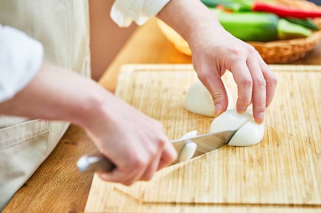 칼을 물에 충분히 적신 후 양파를 손질하는 것도 또 하나의 방법인데요. 화학물질이 눈에 들어가기 전에 칼에 묻은 물에 먼저 용해돼 눈이 매워지는 것을 막을 수 있다고 해요.