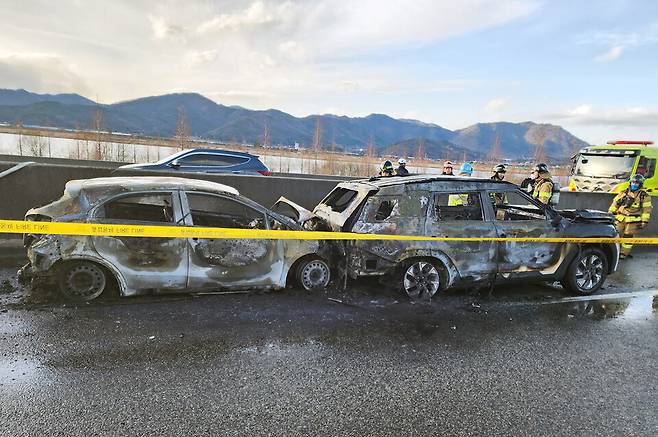 화재 신고를 받고 출동한 소방 당국은 26분 만에 2대 모두 화재 진압을 완료했다. 소방당국은 전기차 화재가 이렇게 빨리 진압된 사례는 찾아보기 힘들다고 밝혔다.