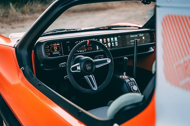 운전석 주변에는 짧은 변속 레버와 함께 긴 핸드 브레이크 레버가 배치되어 있어, 레이싱카다운 조작감과 실용성을 동시에 확보했다.