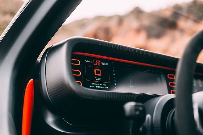고성능 오프로드 머신임에도 불구하고 LFG의 실내는 장거리 여행에도 충분히 넓고 편안하게 설계됐다. 전면 패널에는 연속된 디스플레이 화면이 배치되어 있으며, 그 사이사이에는 에어컨을 포함한 환기 시스템 디플렉터가 깔끔하게 내장되어 있다.