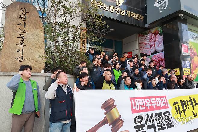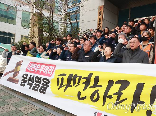 그러면서 민주노총 경남본부는 "윤석열 탄핵판결이 얼마 남지 않았다. 노동자, 민중의 생사존망이 걸린 시기다. 윤석열이 파면되지 않으면 위수령, 계엄등으로 극심한 노동자. 민중탄압이 벌어지고, 한반도 전쟁 등 무슨 일이 벌어질지 모르는 정국이 예견된다"라며 "이미 12.3 비상계엄 전에 전쟁을 획책하고, 계엄령으로 언론통제, 정치활동 금지를 선포했고, 총칼을 들고 국회로 쳐들어갔던 내란세력이 못할 짓이 무엇이 있겠는가?"라고 했다.