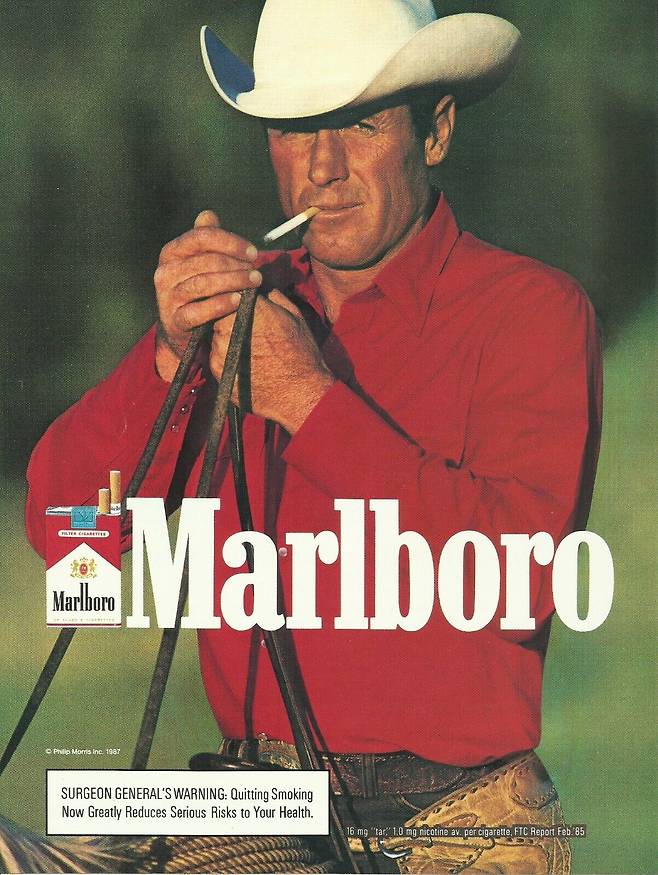 1954년 레오 버넷(Leo Burnett)이라는 광고 회사가 '터프한 남자들이 피우는 담배'라는 이미지를 내세우며 정반대로 포지셔닝을 변경한 후로 세계 1위 담배의 입지를 확실히 할 수 있었죠. '말보로맨'이라 불리는 카우보이를 내세운 광고가 처음 소개된 후 말보로의 매출은 3,000% 이상 성장했을 정도니까요.