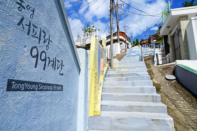 서피랑 공원은 통영 시내를 한눈에 내려다볼 수 있는 전망대로, 99계단을 오르면 만날 수 있습니다.