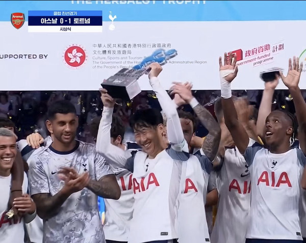 그러나 역시 주장은 손흥민이었다. 히샬리송은 완장을 벗어 손흥민에게 다시 전달했다. 시상대가 준비됐고, 손흥민은 선수단 중앙에 섰다. 2025 홍콩 투어 기념 트로피를 건네 받은 손흥민. 경기장 아나운서는 손흥민의 이름을 크게 외쳤다. 손흥민은 멋쩍게 웃으며 트로피를 높이 들어 올렸다. 권위가 높은 대회의 트로피가 아니었지만, 선수들은 박수를 치며 기쁨을 만끽했다.