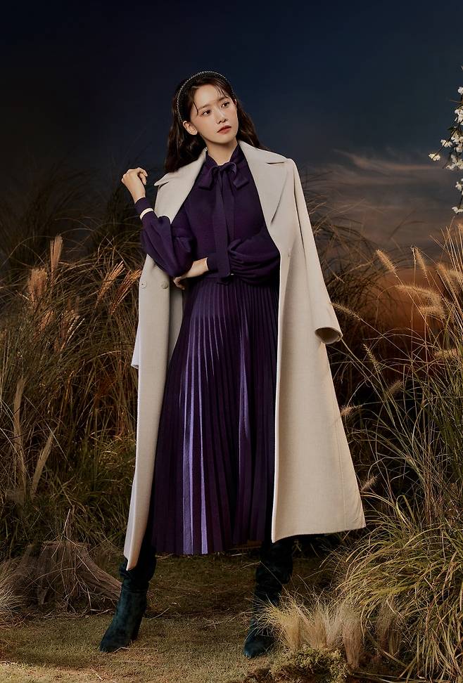 윤아 씨는 코랄 블루 컬러에 톡톡한 니트 소재로 완성한 가디건, 딥 퍼플의 니트 플리츠 원피스, 슬림하게 피팅되는 라인의 캐시미어 블랜드 롱 코트 등을 자신만의 우아한 분위기로 완벽 소화했다.