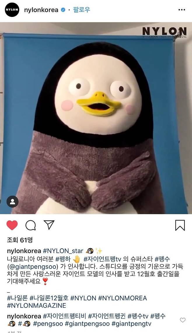 펭수 나일론 12월호 화보촬영