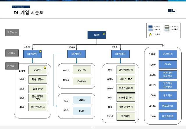 이들 회사는 과거 대림산업이 여러 시공사들과 함께 수행했거나 투자했던 공사들이다. 지주사 전환 후 지분정리가 되지 않아 DL㈜가 지분을 보유하고 있는 곳들이다. 현행 공정거래법에 따라 지주사는 자회사 외 계열사의 지분을 보유할 수 없다. DL㈜이 지난해 초 지주사로 전환된 만큼 2년 내 행위제한 요건을 해소하면 된다. 올해 말부터 내년 초까지 DL㈜는 대거 지분 정리에 나설 전망이다.
