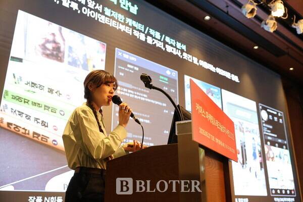 김성은 네이버웹툰 인공지능(AI)플래닝 매니저는 블로터 주최로 27일 서울 서초구 엘타워에서 열린 '커머스마케팅&테크놀로지 서밋(CMTS) 2025'에서 네이버웹툰의 우수 지식재산권(IP)과 대규모언어모델(LLM)을 접목한 마케팅 솔루션 '캐릭터챗'을 소개했다. AI 기술을 활용해 콘텐츠 이용자의 관심을 높인 새로운 마케팅 사례다.