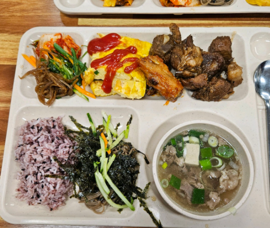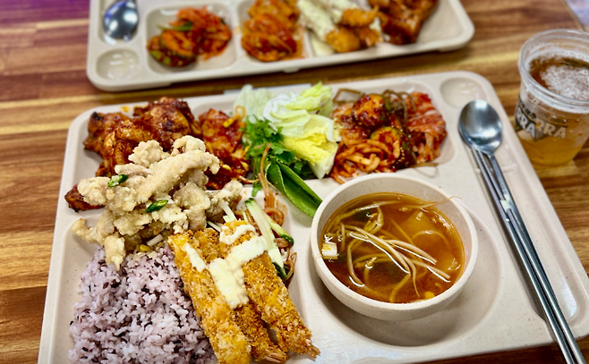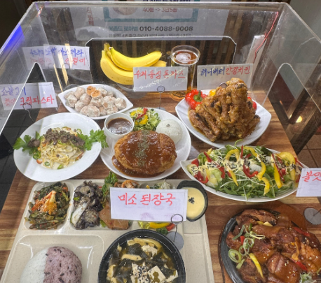 치킨, 불고기, 돈가스, 국, 반찬까지한 끼 식사로 부족함 없는 구성입니다
