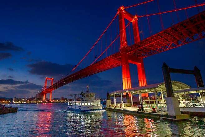 전체 길이는 약 627m, 중앙 스팬은 367m에 달하며, 붉은 다리와 주변 항만 풍경이 어우러져 낮에는 힘찬 도시 이미지를, 밤에는 조명과 함께 낭만적인 야경이 압권이에요.