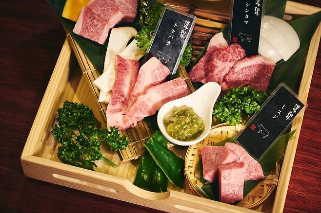 규슈가 자랑하는 최고급 소고기 중 하나로, 육즙이 풍부하고 부드러운 식감이 특징입니다. 불판에 구워 소금만 살짝 뿌려 먹어도 깊은 풍미를 느낄 수 있습니다.