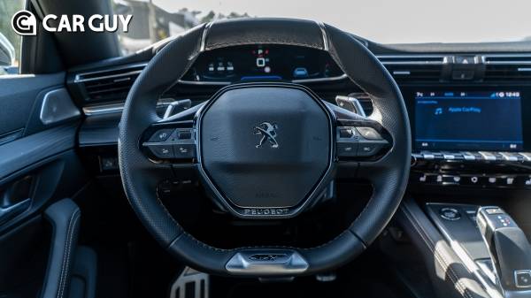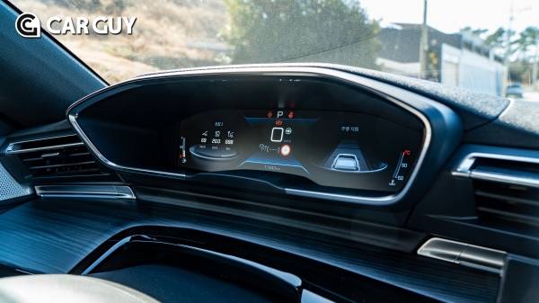 실내로 들어서면 푸조 특유의 독특한 i-cockpit이 눈에 띈다. 핸들 상단 위에 위치한 12.3인치 디지털 계기판은 시인성이 좋아 HUD 부재가 아쉽지 않다. 기본적인 테마 선택 폭은 크지 않은 편이다.