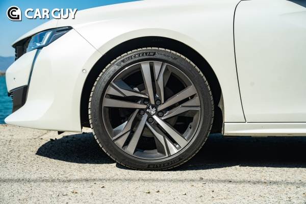 GT PACK 트림부터 적용되는 19인치 휠은 작은 휠하우스에 꽉 차 보인다. 휠하우스가 꽉 차보여야 다부지고 스포츠카 느낌이 난다. 타이어는 미쉐린이다. 130마력 밖에 되지 않는 전륜구동 중형차에 파일럿 스포츠 4는 다소 과해 보인다.