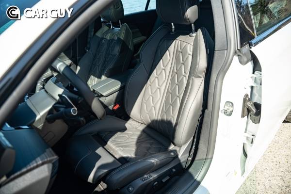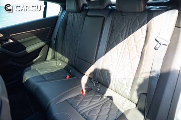 1열 시트는 플래그쉽답게 고급 가죽시트를 적용해 안락하다. 마사지 기능을 포함해 운전석은 메모리 기능까지 지원한다. 허벅지 받침을 연장할 수 있어. 장거리 운전에 최적화 되어 있다. 시트 문양도 매무 독특하다. 지붕이 낮은것에 비해 포지션이 크게 내려가지 않는 점은 옥에 티다.