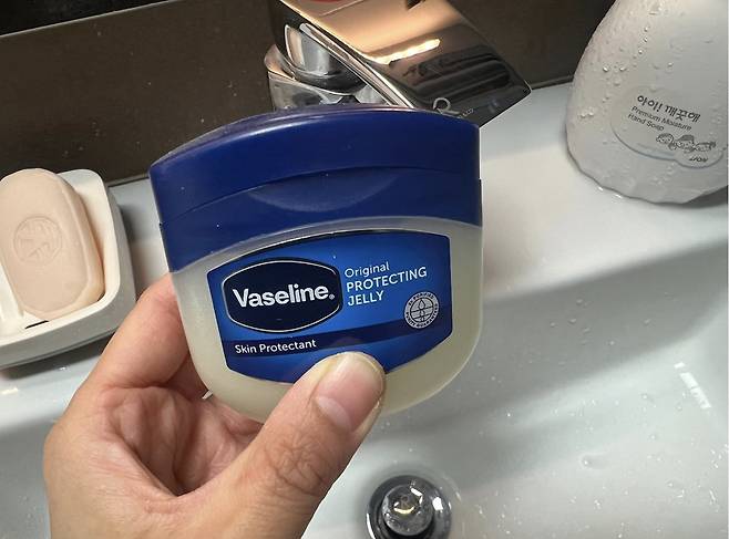 바세린의 파라핀유 기름성분이 수전을 코팅해 주는 효과까지 있어요