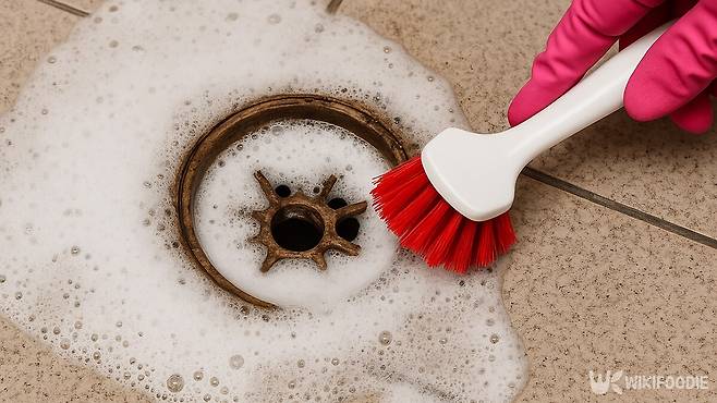 다 쓴 참치캔이나 작은 금속 용기에 베이킹소다 한 컵과 주방세제 한 스푼을 넣어 섞는다. 이 용기를 그대로 하수구 안쪽에 넣은 뒤, 뜨거운 물 1리터를 천천히 부어준다. 캔 안에서 베이킹소다와 세제가 반응하며 거품이 생기고, 이 거품이 배관 깊은 곳까지 퍼지면서 기름때와 찌든 찌꺼기를 불려 제거하는 데 도움이 된다. 약 5분 정도 지난 뒤 하수구 입구를 솔이나 수세미로 문질러 오염물을 제거하고, 다시 따뜻한 물로 헹궈 마무리한다. 특히 싱크대처럼 기름이 자주 쌓이는 곳은 이 방법을 주 1회 반복하면 냄새와 막힘을 줄일 수 있다.