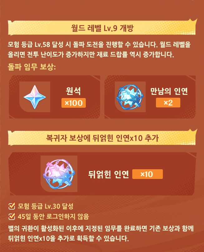 출석체크 통해 뽑기 재화 '뒤얽힌 인연' 10개 지급…복귀자에게 10개 추가 제공