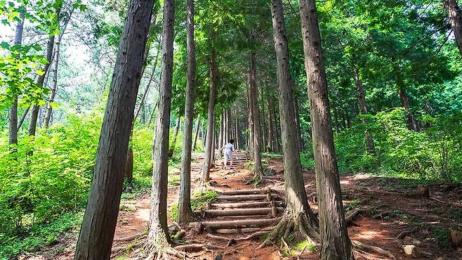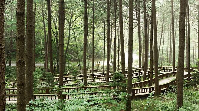 수령 50년이 넘은 편백나무 숲이 빽빽하게 들어서 있어 마치 거대한 공기정화기처럼 맑은 숨을 내쉰다.