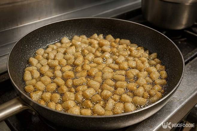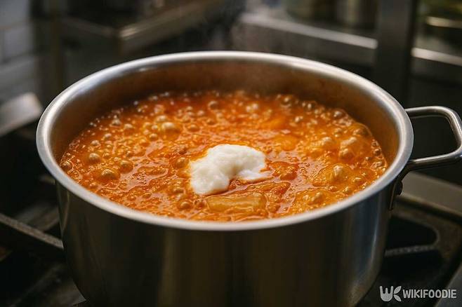 5. 팬에 간 비계를 넣고 약한 불에서 천천히 끓인다.