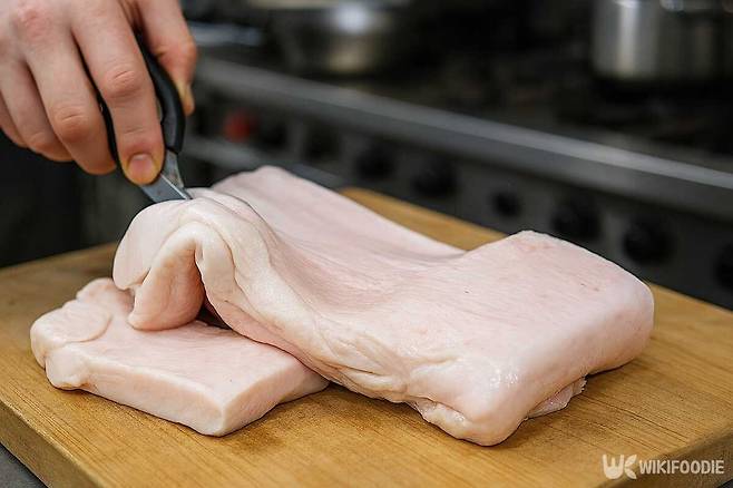 3. 끓는 물에 돼지비계를 넣고 약 2분간 데친다.