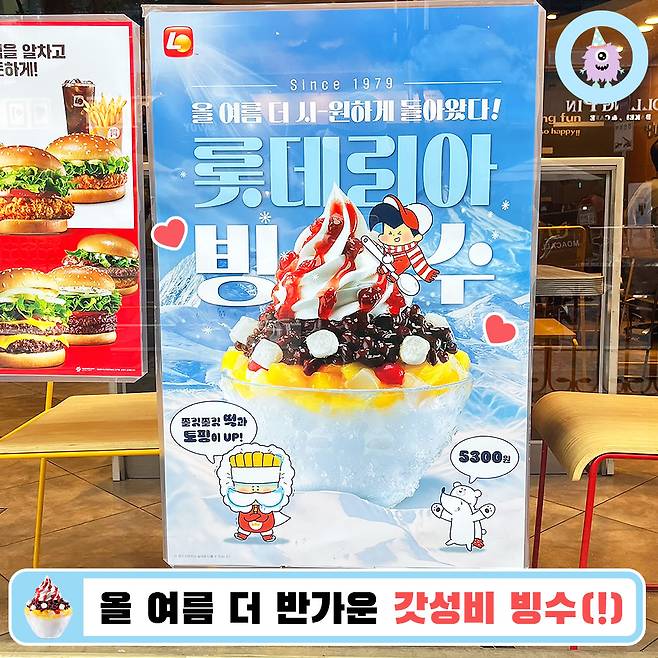 오늘은 내돈내산으로 먹은 여러 빙수 중에서 여름 시즌메뉴로 출시된 '롯데리아 빙수'를 소개해 드리고 싶어서 이렇게 달려왔답니다. 어제보다 오늘 더 비싼 고물가 시대에 혼자서도 부담없이 사먹을 수 있는 1인 메뉴라는 점과, 부모님들도 좋아하실 팥빙수의 정석 같은 맛이라는 점이 좋았던 것 같아요.