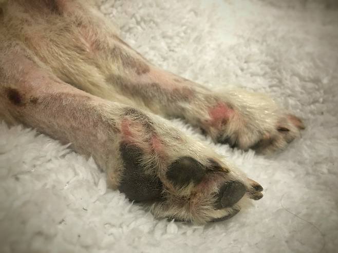 - 과하게 발을 씹거나 핥는 행동 (가려움증)