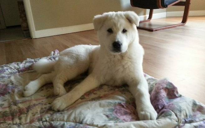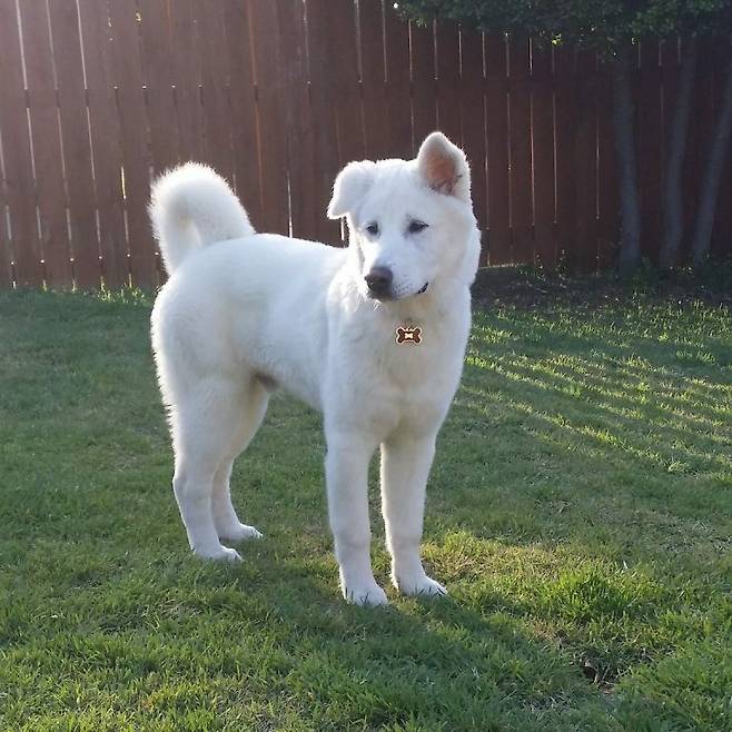 풍산개는 원래 흰 색인 백구 외에도 검은색인 흑구, 회색인 재구 그리고 황색인 황구가 있었다고 합니다. 하지만 현재는 흑구와 재구는 찾아보기 어렵고 자료로만 남아있으며, 황구만 백구만 찾아볼 수 있어요.